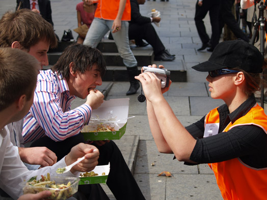 performers photographed and filmed people in public to stimulate