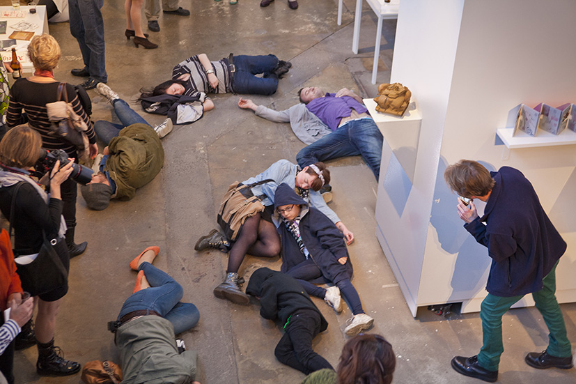 The work was re-performed at the entrance to the Artfair in Sydney.